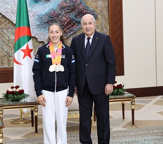 استقبل رئيس الجمهورية، السيد عبد المجيد تبون، اليوم، البطلة الأولمبية والعالمية كيليا نمور رفقة والديها والطاقم الفني والتقني لفيدرالية الجمباز. حضر الاستقبال السادة بوعلام بوعلام مدير ديوان رئاسة الجمهورية، وليد صادي وزير الرياضة وكمال سيدي السعيد مستشار لدى رئيس الجمهورية المكلف بالمديرية العامة لل...